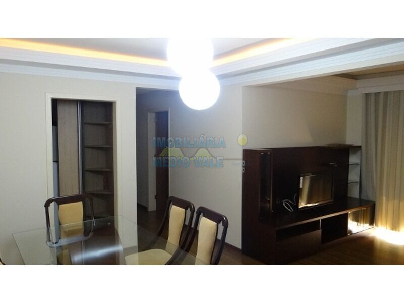 Fica todos móveis, dentre eles, tv, 03 ar condicionado, máquina de lavar roupas nova, secadora de roupas nova, geladeira, fogão, forno micro-ondas, ventiladores de teto, chuveiro, sofá, mesa, móveis sob medida, piso laminado novo, cortinas. Prédio com elevador, poço artesiano com água excelente, área de festa, terraço, sistema de segurança com câmeras, excelente localização com muitos serviços bem próximos como Panificadora, pizzaria, supermercado, faculdade, colégio, academia, fácil acesso a Br. 470.