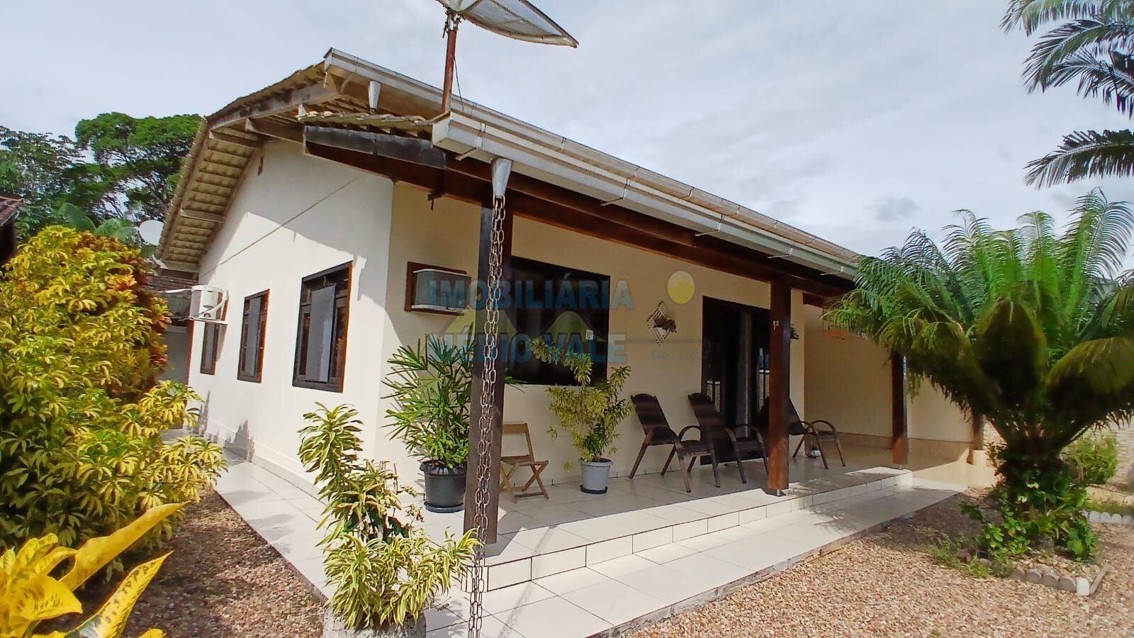 Casa principal com 120,00² c/ 03 dormitórios, sala de estar, ampla cozinha, banheiro, dispensa, área de serviço, varanda com churrasqueira, garagem para dois carros e um pomar atrás da casa com diversas frutas e verduras.