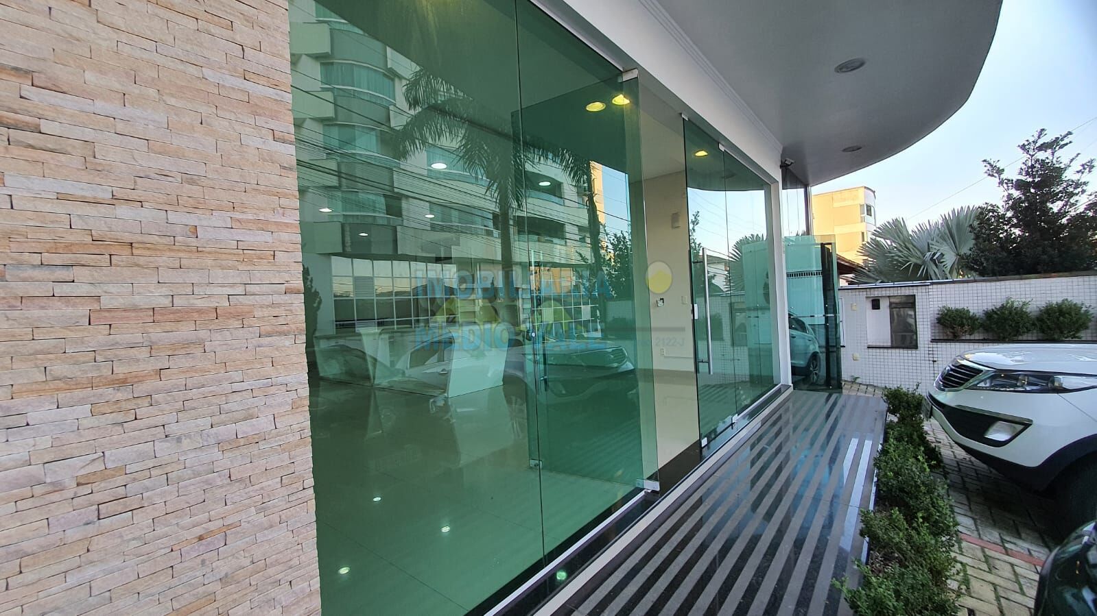 fachada com vidro temperado.